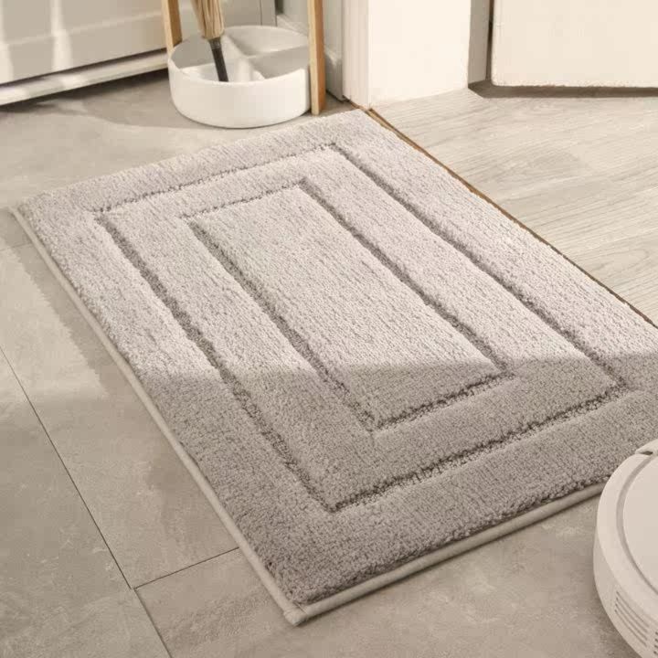 浴室上がりの足元を優しく包み込むタオル地のバスマットです。 立体的な額縁デザインが空間に上品な印象を与え、ふかふかの踏み心地で快適にご使用いただけます。 吸水性に優れた素材を使用しており、濡れた足元の水分をしっかりと吸収します。 洗濯機で丸洗いできるのでお手入れも簡単です。 浴室やお風呂場の足元を彩るおしゃれで実用的なアイテムとして、毎日の暮らしに快適さをもたらします。